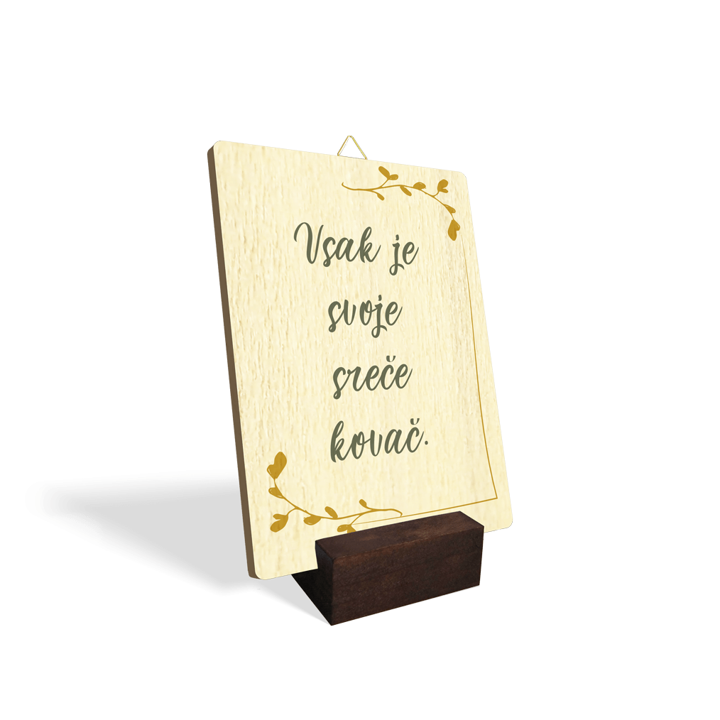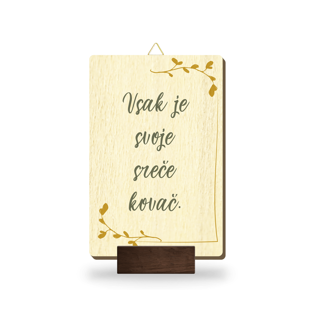 Lesena slika z napisom "Vsak je svoje sreče kovač."