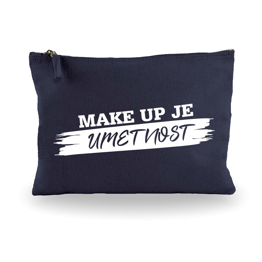 Mornarsko modra bombažna toaletna torbica z napisom "make up je umetnost"